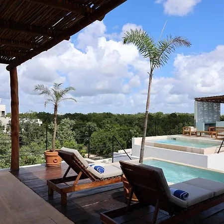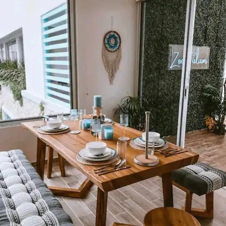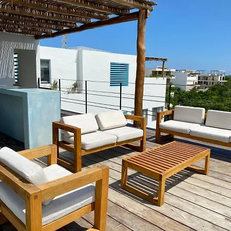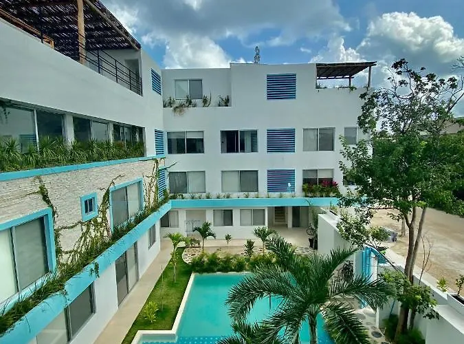 Coliving Rosa Azul Tulum Aparthotel met 11 kamers ligt op 10 minuten rijden vanaf het Nationaal Park Tulum in de wijk La Veleta en biedt auto's en fietsen te huur. Het aparthotel op nog geen 10 minuten rijafstand vanaf het Maya Ruïnes van Tulum biedt uitzichten op de tuin en een een dakzwembad.
